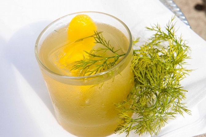 カクテルの奥に広がる、セージとディルのニュアンス。