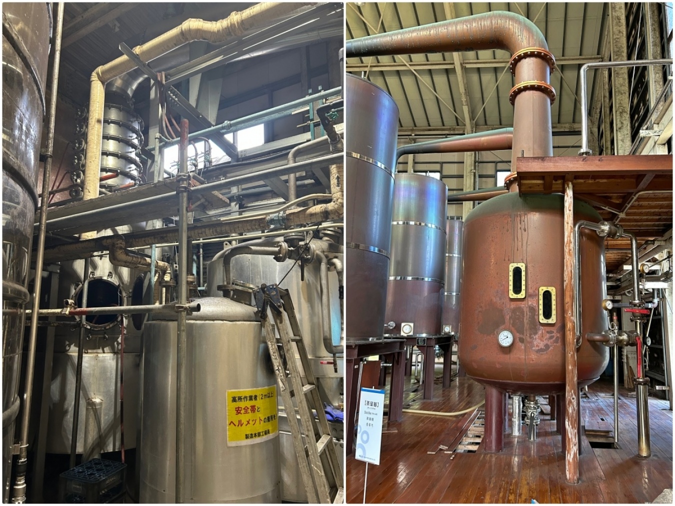 左はラム用の、右はウイスキー用の蒸留器。