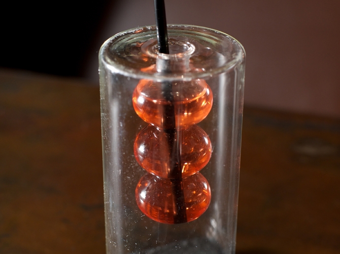 ベースにジンを使ったアルコール度の高いカクテルだが、ガスを注入し、口当たりの良い発泡性にした。