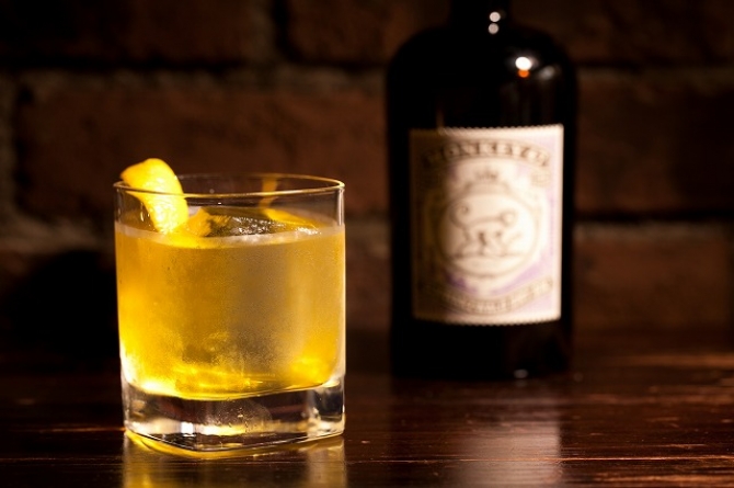 怪しく光る黄金色のネグローニ。