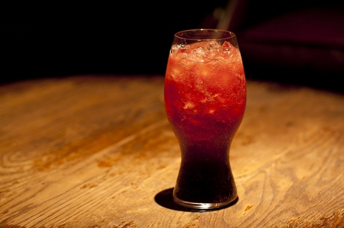 自家製Dr.ペッパーとグラスがポイント。