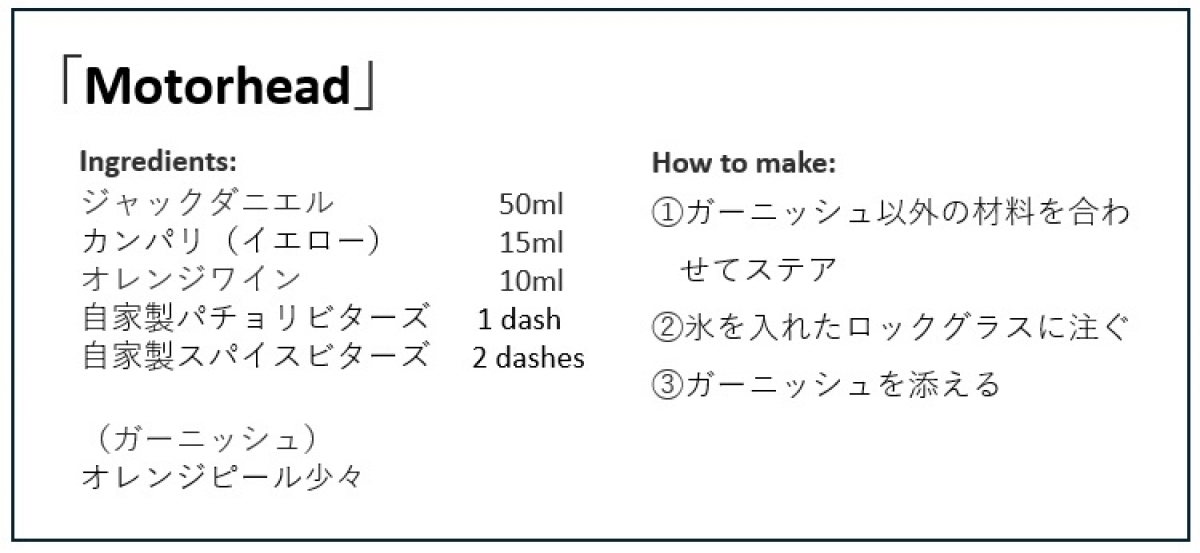 若林さんのカクテル「Motorhead」